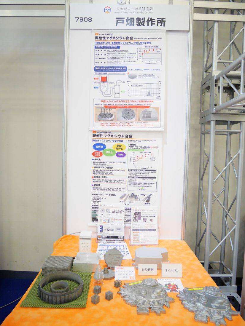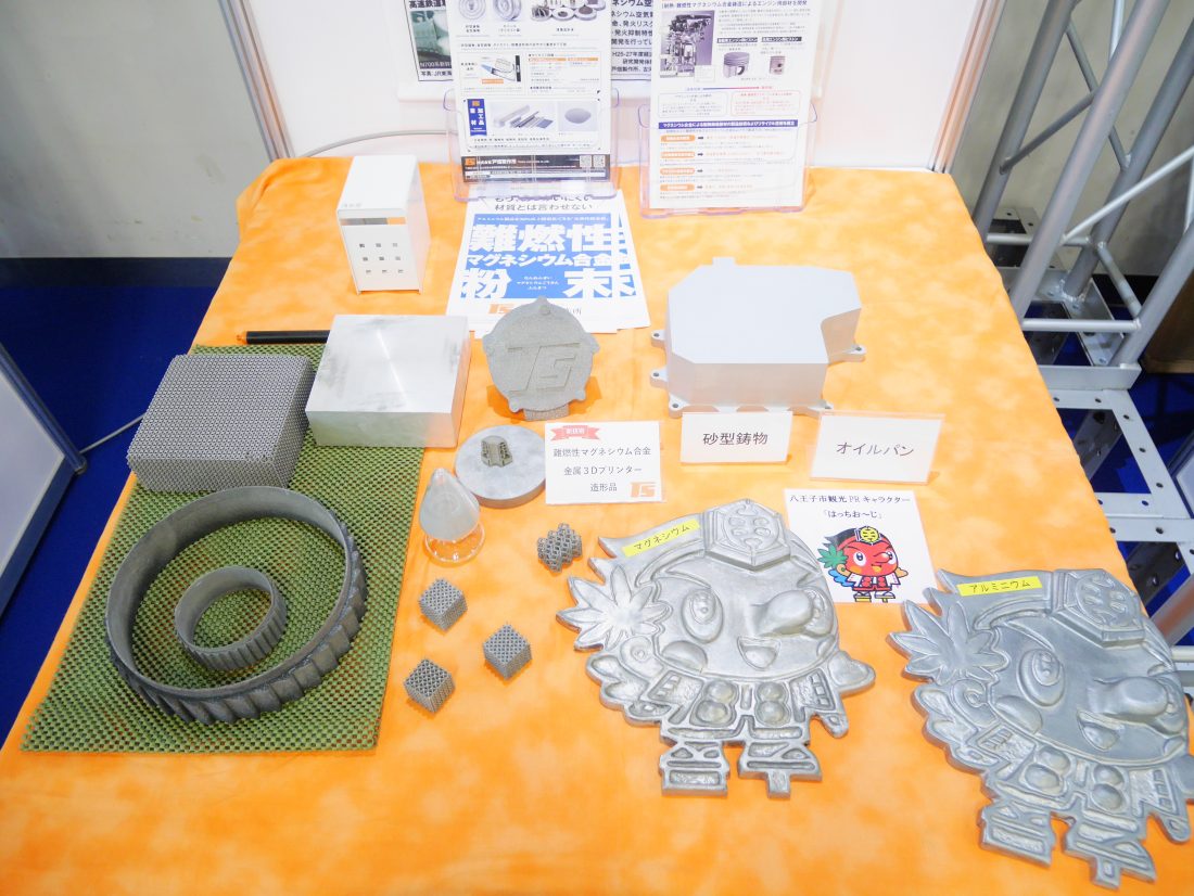 銅・銅合金及び難燃性マグネシウム合金の材料メーカー。難燃性マグネシウム合金を使用した軽量部品のAM製造と開発を行っている。環境負荷軽減に向けた各種構造体の軽量化、振動、騒音の低減等、様々な分野において用途拡大が期待されており、少量多品種、複雑形状に対応したAM開発事例を展示。既に新幹線N700系の荷棚受けとして実用化している。